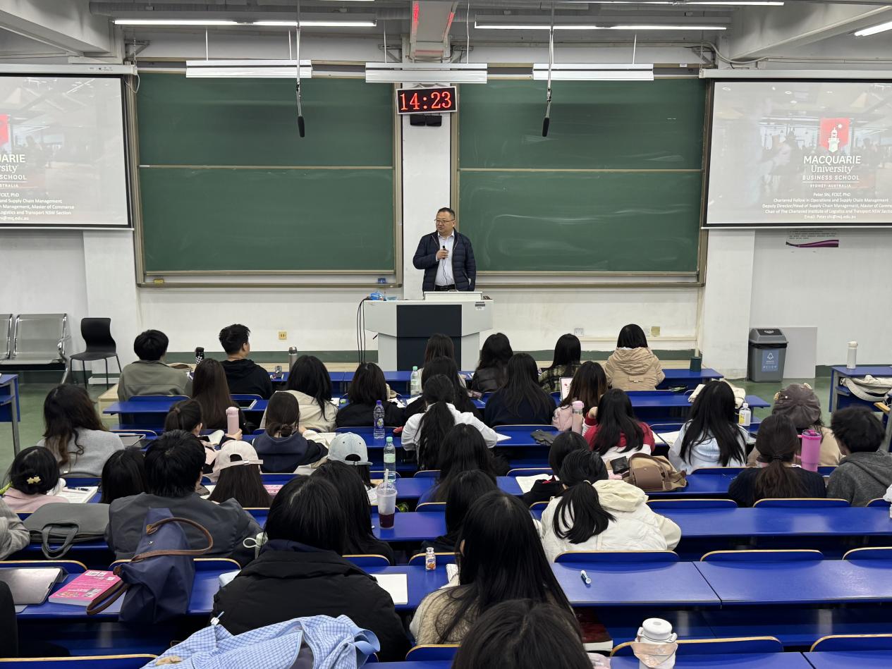 提问交流环节,史教授结合自身担任多本国际期刊主编、编委的经验,从学术视角补充了供应链领域论文写作的选题方向与投稿策略,强调需立足数字化实践痛点挖掘研究价值。此外,史教授就麦考瑞大学商学院的基本情况以及相关专业的留学申请核心信息回答了同学们的提问。本次“名师进课堂”活动,为同学们了解供应链数字化与创新的前沿,开展学术探索与国际交流提供了切实指导。