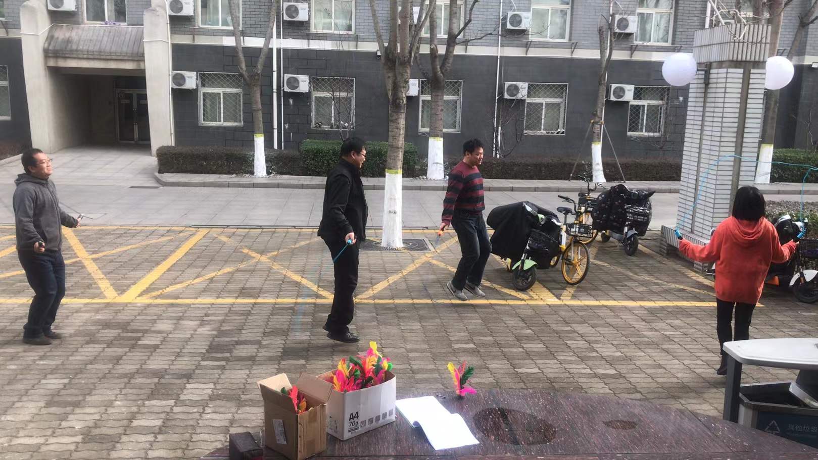跳绳中,教职工身轻如燕,彩绳在空中快速翻飞活动;有的气喘吁吁,但仍然坚持挑战自我。踢毽子中,大家手脚齐上、左右开弓、你来我往;跳有氧操时,动作整齐、姿态优美。虽然11月的天气已经有些寒冷,但大家兴致却很高,一边运动一边交谈,欢声笑语不断。